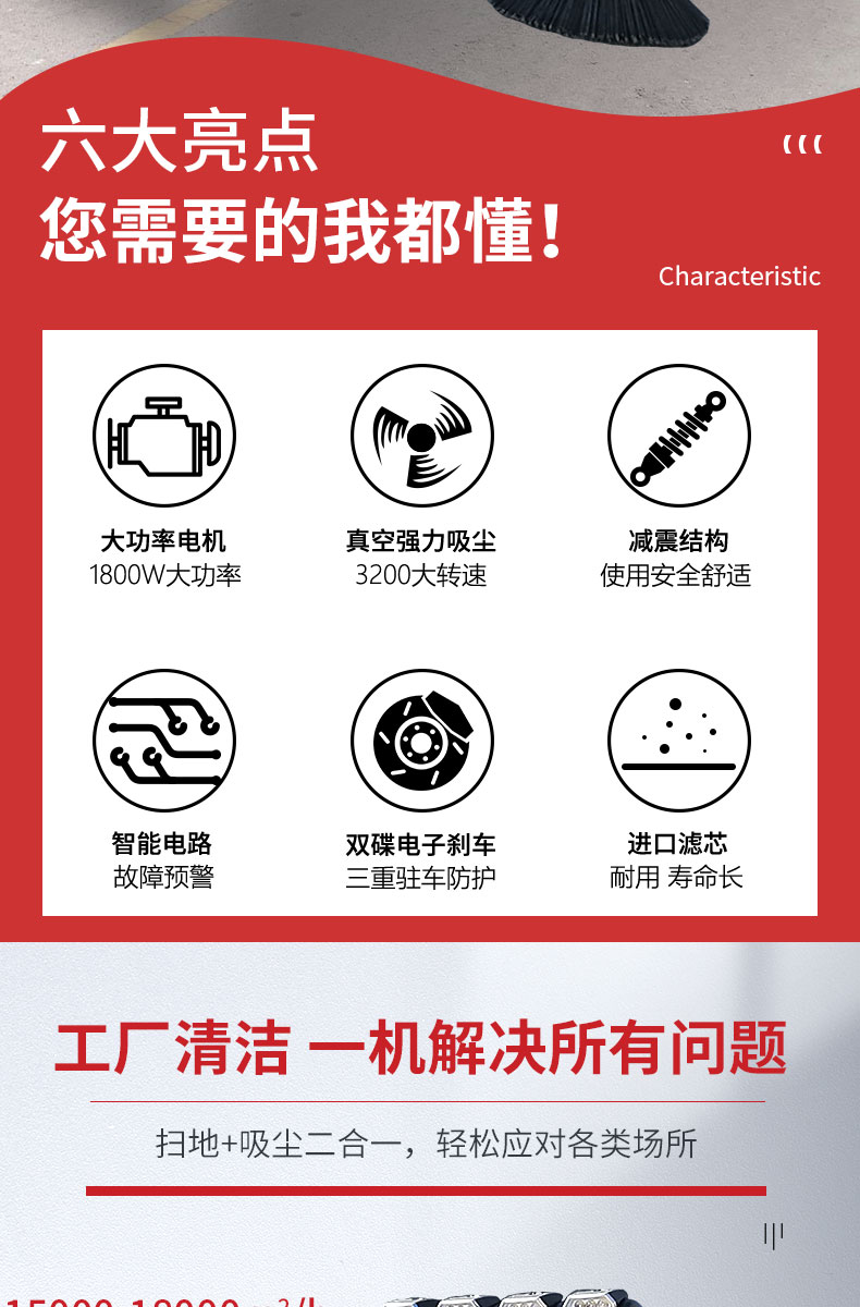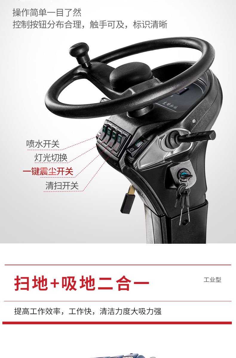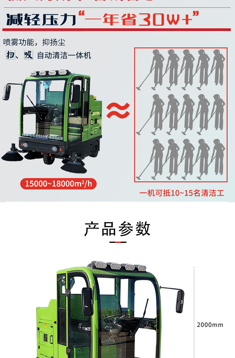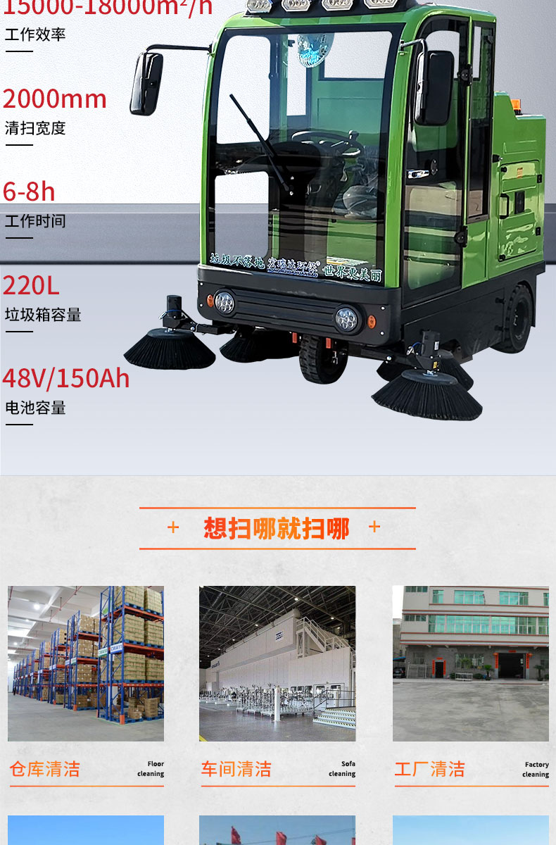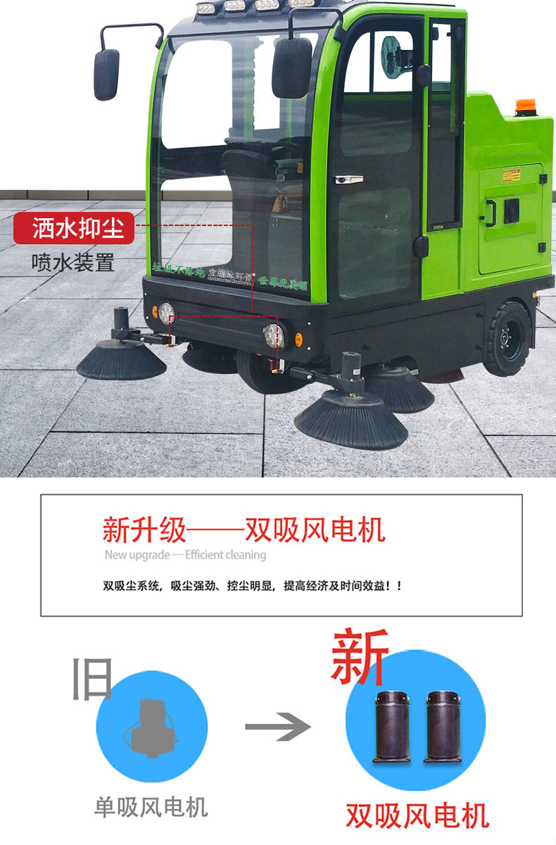 HRD-2000S全封閉駕駛式掃地車配置雙風機系統,具有強大的吸塵能力,清掃寬度大可達2米,一小時工作量相當于6-8名清潔工的工作量,可連續工作6-8小時,特別適合煤礦、水泥廠、雕刻廠、面粉廠、建材廠、金屬冶煉廠、工廠車間、商場、車站、廣場公園、景區等場所使用。