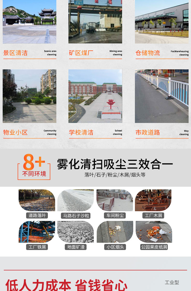 - HRD-1900S采用160L超大容量滾塑材質水箱,防火防高溫,清掃寬度大可達1 9米,可連續工作4-5小時,特別適合煤礦、水泥廠、雕刻廠、面粉廠、建材廠、金屬冶煉廠、工廠車間、商場、車站、廣場公園、景區等場所使用。