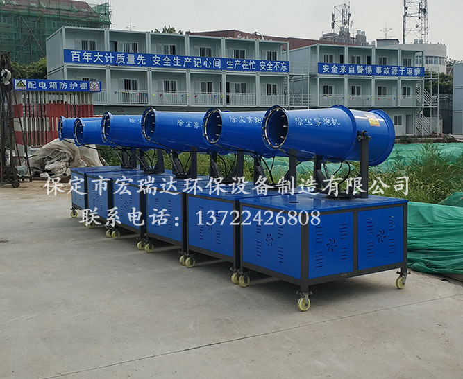 為控制揚塵問題在建筑工地上發生,湖北京奧建設采用宏瑞達霧炮機為工地建設降塵除霾,控制粉塵污染環境。宏瑞達降塵霧炮機HRD-PW30是一款較典型的霧炮機實用產品。風筒可仰俯角度45,320度旋轉,宏瑞達霧炮機可制作多種形式,移動噴霧。固定噴霧、加裝在灑水車上、安裝與高塔上、拖車形式噴霧。噴出的水霧可實現常量、低量、超低量等多種形式適用于不同場所噴霧要求。